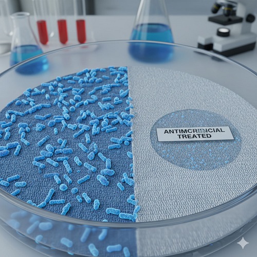 Treated textiles that inhibit bacterial growth and odor formation, perfect for healthcare and hygiene-sensitive environments.
